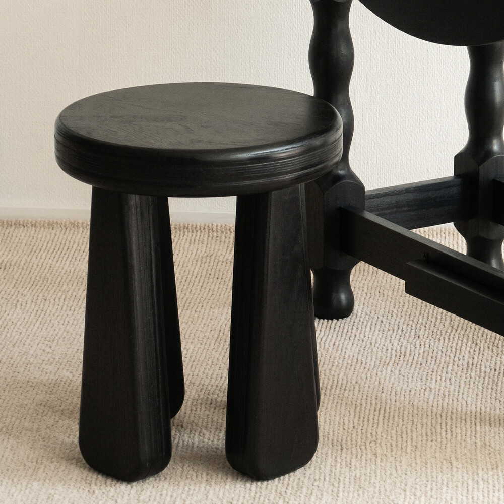 빛에 따라 은은하게 드러나는 나뭇결의 텍스처는 스툴 하나만으로도 공간의 무게중심을 잡아주는