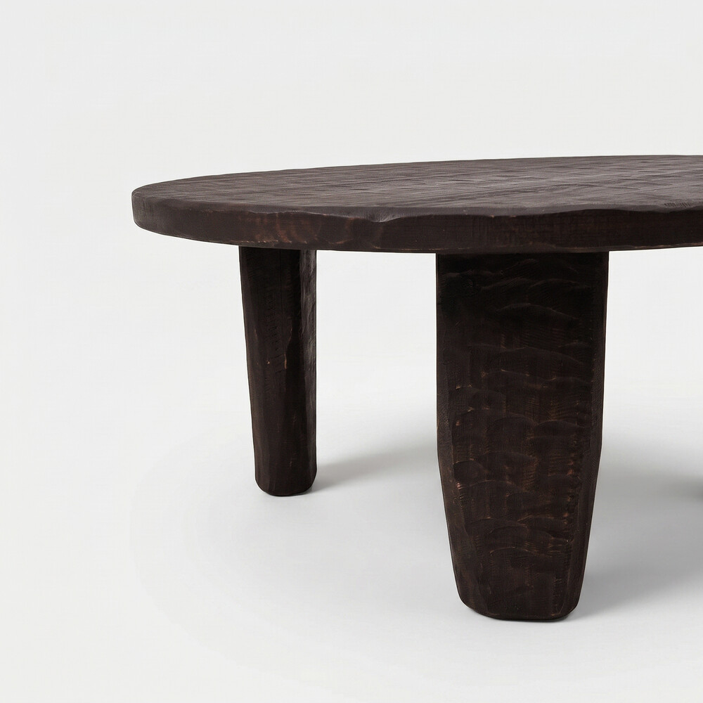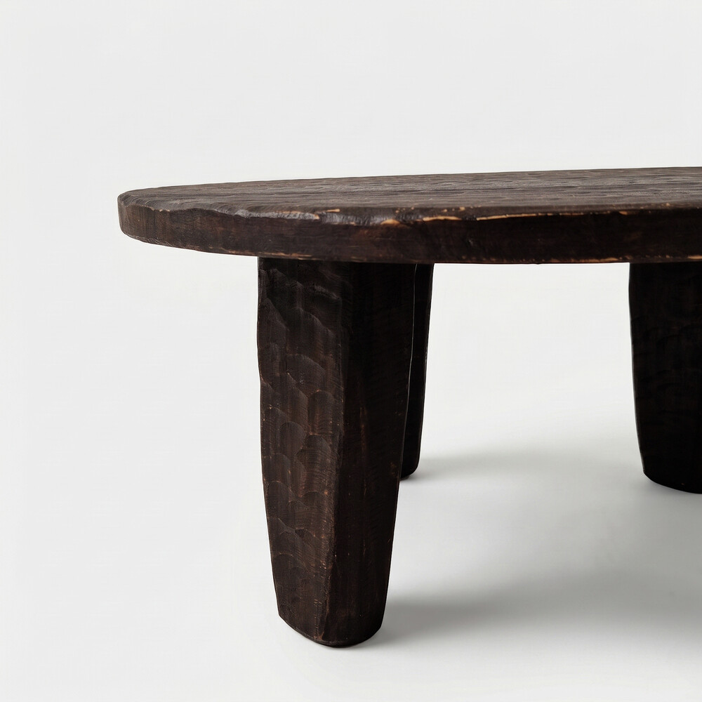 이 테이블의 원초적이고 투박한 형태는 아프리카의 전통적인 조각 가구에서 깊은 영감을 받았습니다.