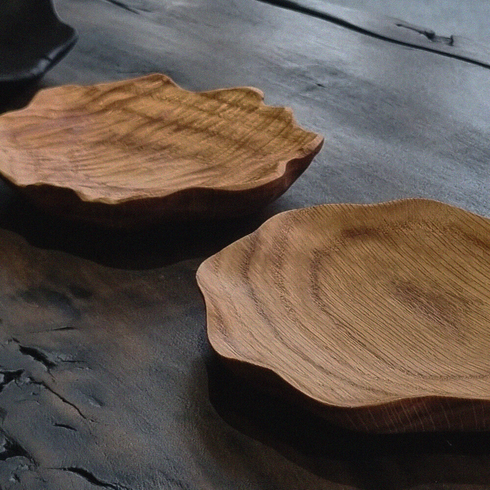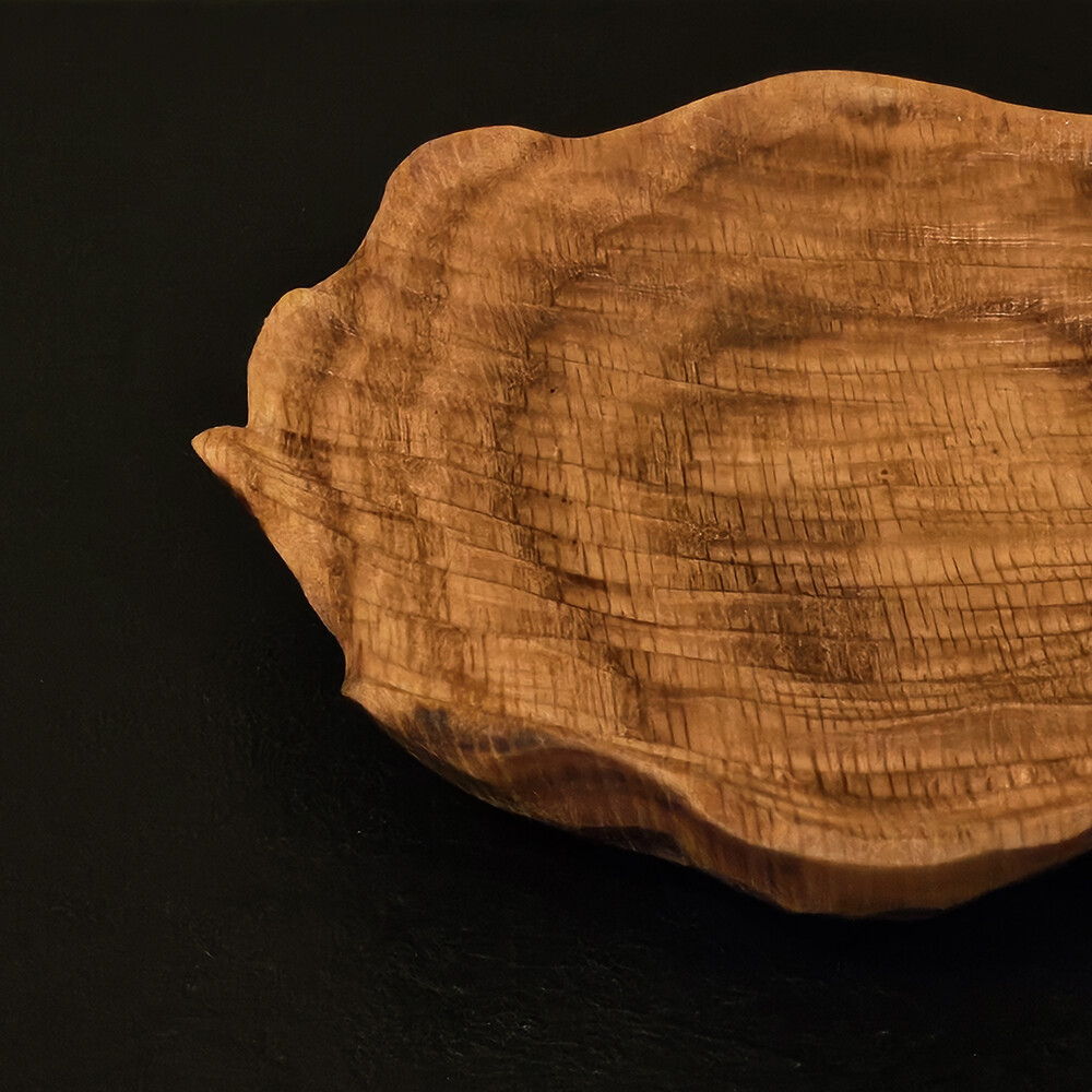 단단하고 결이 아름다운 레드오크 원목을 손으로 하나하나 깎아내어 완성한 리플 오크 트레이입니다.
