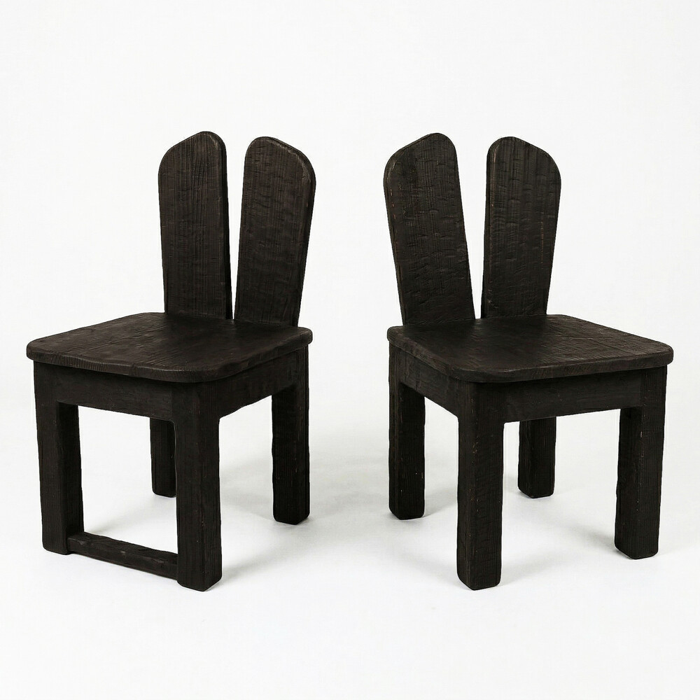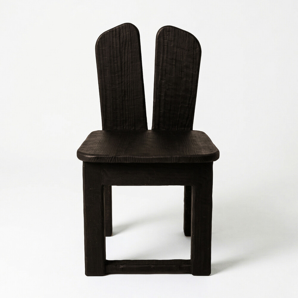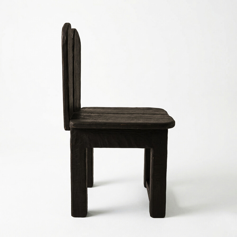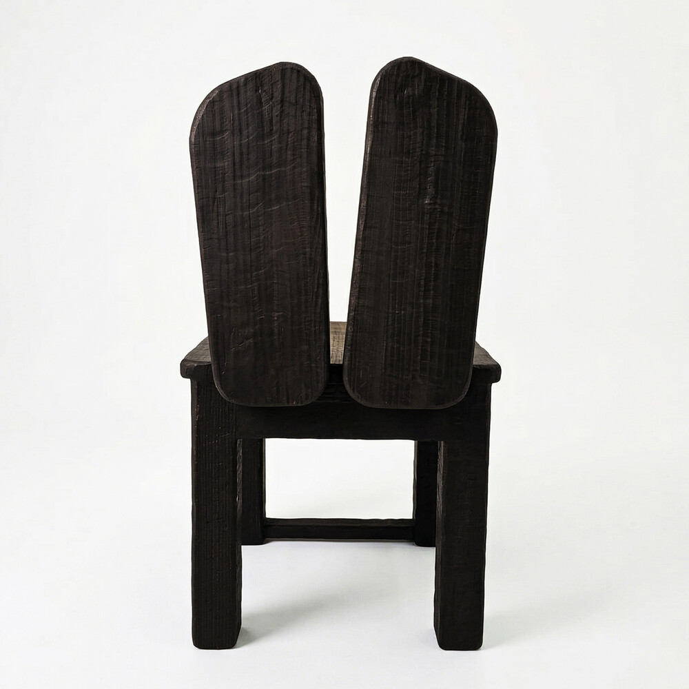 짙고 무게감 있는 다크 브라운 컬러가 의자의 투박한 형태와 어우러져 차분하면서도 고급스러운 무드를 연출합니다.