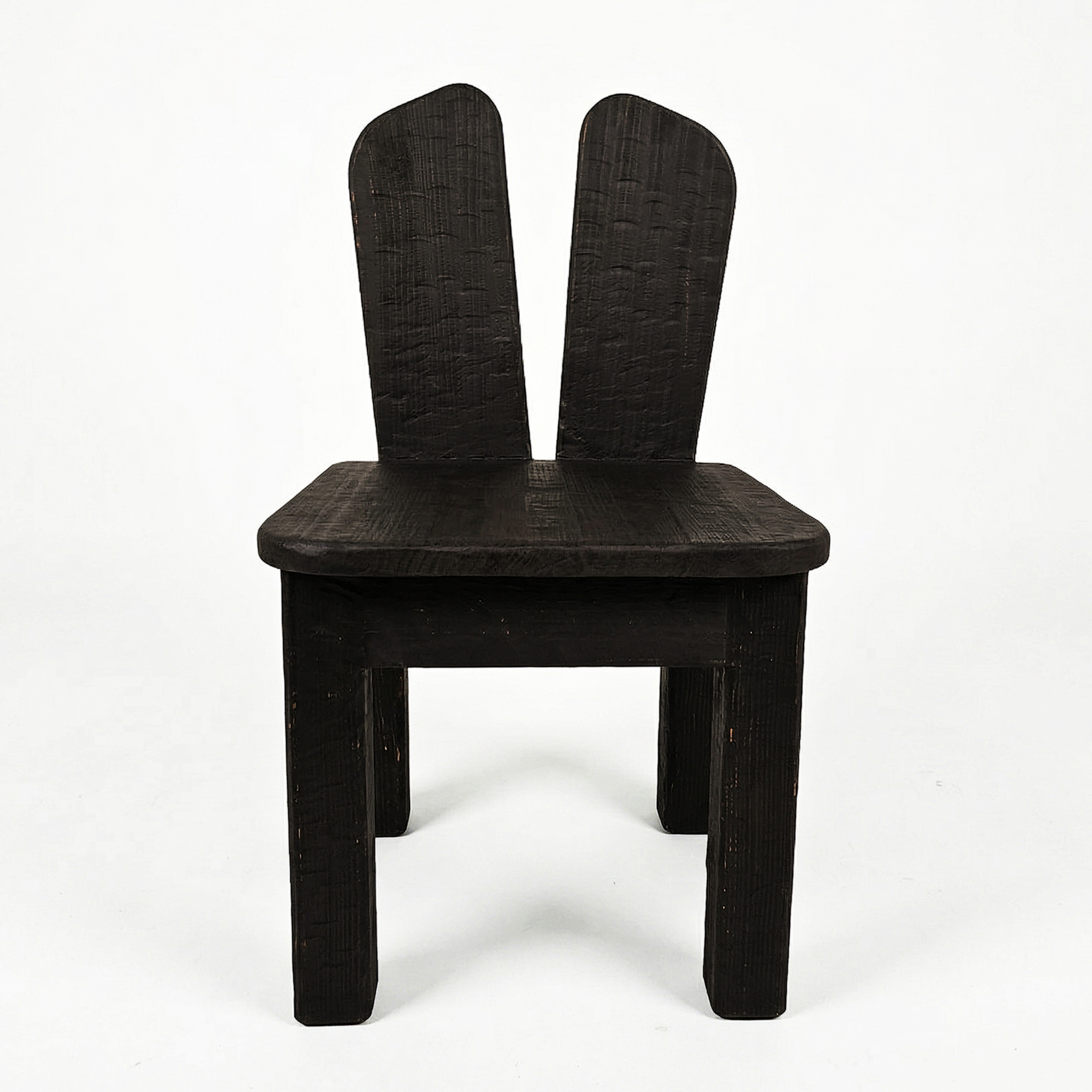 수직으로 뻗은 비대칭적인 두 갈래의 등받이가
