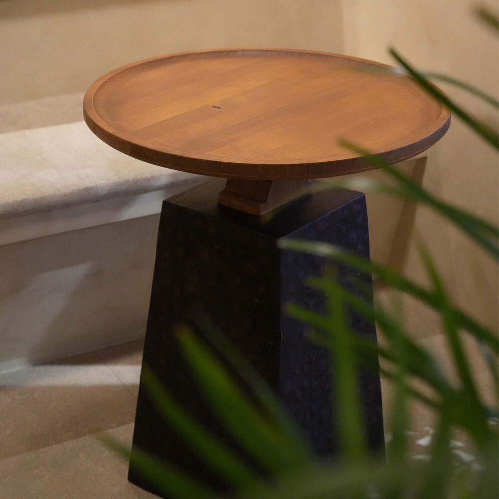 공간의 분위기를 차분하고 무게감 있게 눌러주는 매력적인 사이드 테이블을 소개합니다.