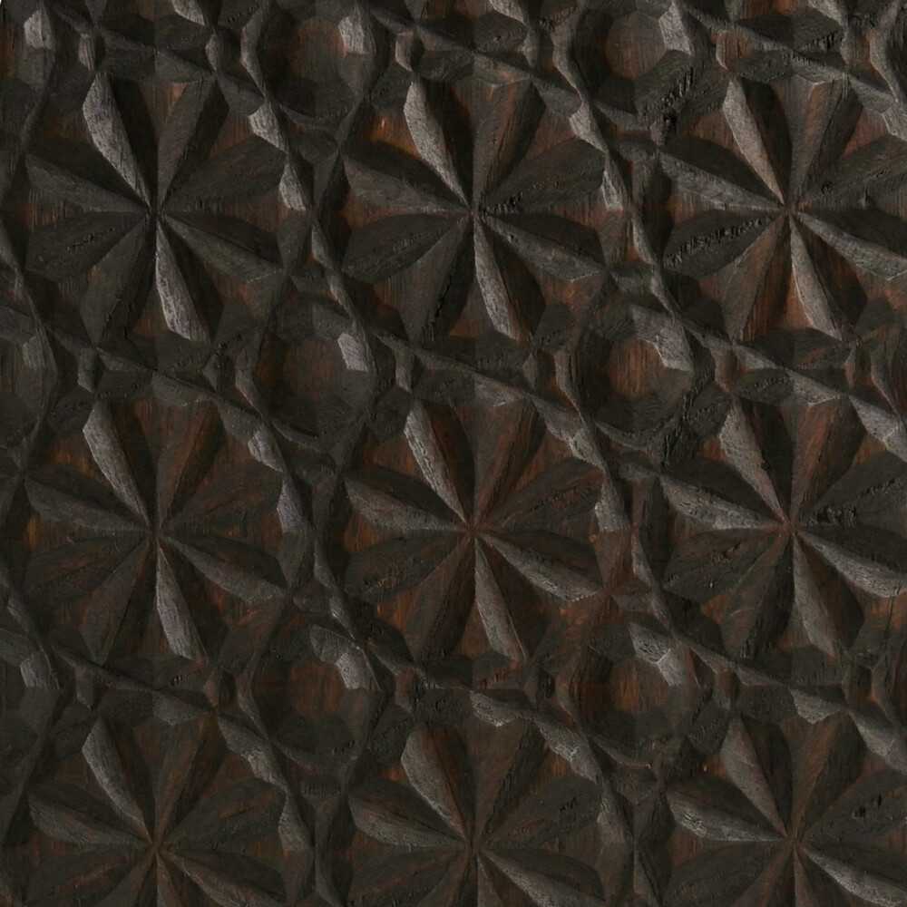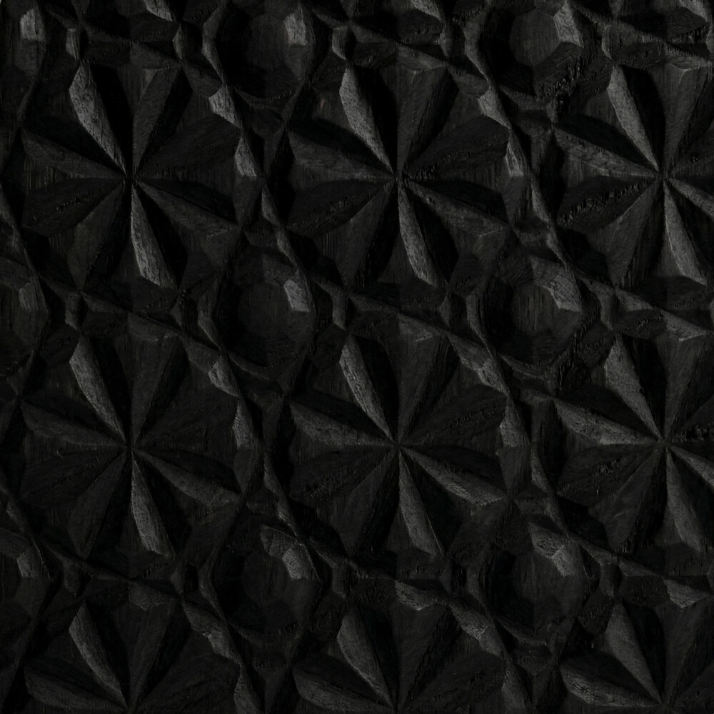 표면을 가득 채운 입체적인 기하학 패턴과 다크한 색감이 어우러져,
