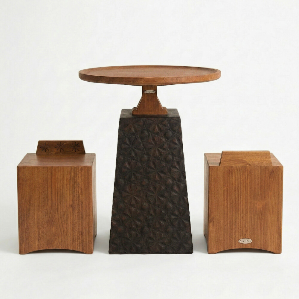 전통적인 소반의 유려한 정서와 이국적인 조각의 디테일이 하나의 오브제로 탄생했습니다.