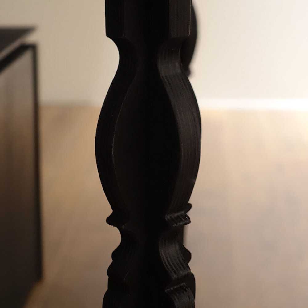 장식을 덜어낸 간결한 상판은 다리의 조형미를 더욱 돋보이게 하며 전체적인 디자인의 균형을 완벽하게 잡아줍니다.